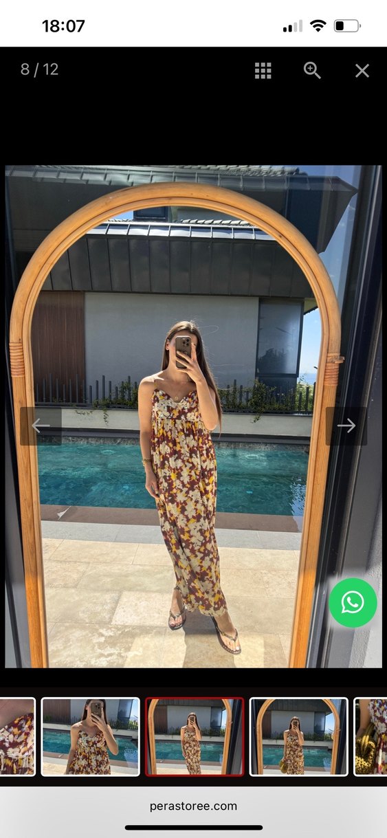 Askılı olmayan, kolsuz uzun elbise, bol kesim ve drapeli detaylarla, hafif çok renkli batik desenli, yumuşak sentetik kumaştan. Günlük kullanıma uygun bohem tarzı.