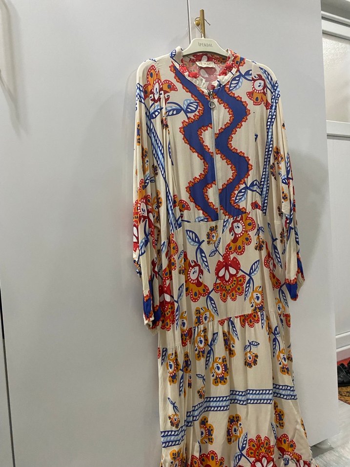 Bohem Çok Renkli Uzun Elbise