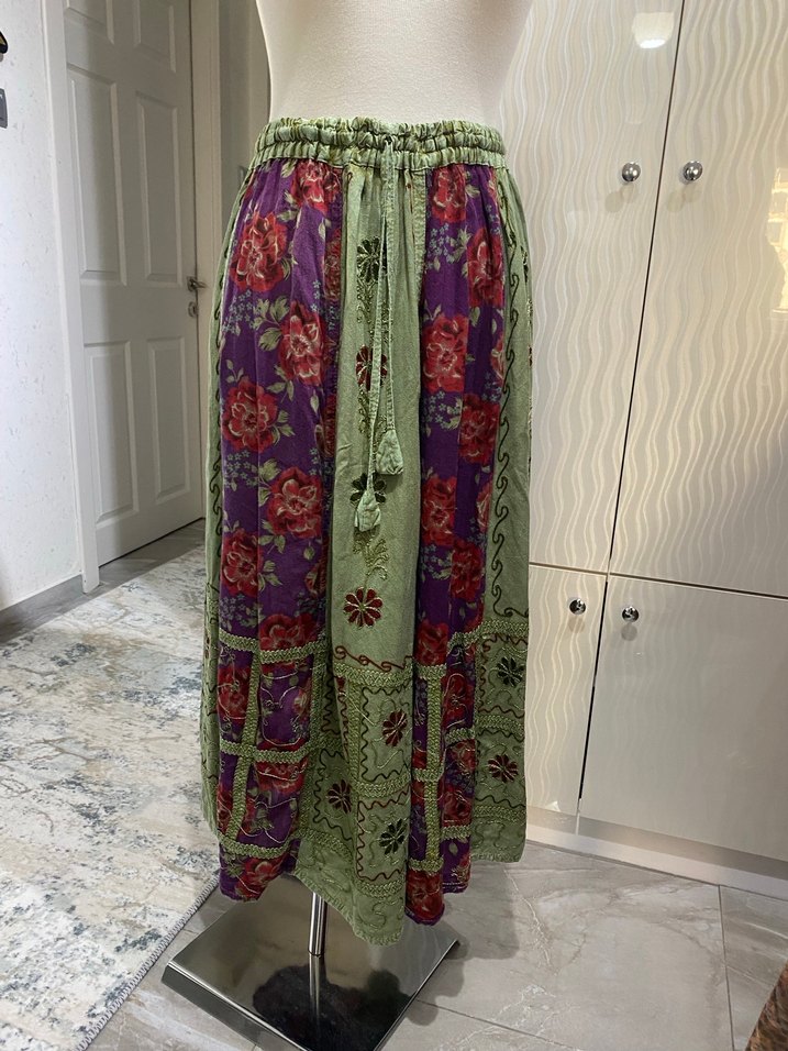 Bohem tarzda, çok renkli bağlama desenli, bol kesim uzun etek. günlük kullanıma uygundur. Ürün sıfırdır 38_44 beden aralığında