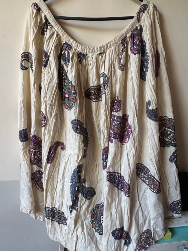 Bu uzun hamile eteği, bol kesim ve drapeli tekstil kumaşı ile açık renkli çok renkli batik desenine sahiptir, günlük kullanım için uygundur.