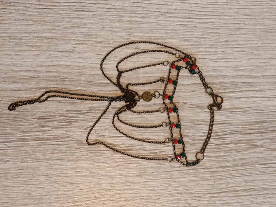 Bohem tarzda, çok renkli işlemeli detaylara sahip uzun ve koyu renk zincirli bileklik günlük kullanıma uygundur. rengi solmuştur