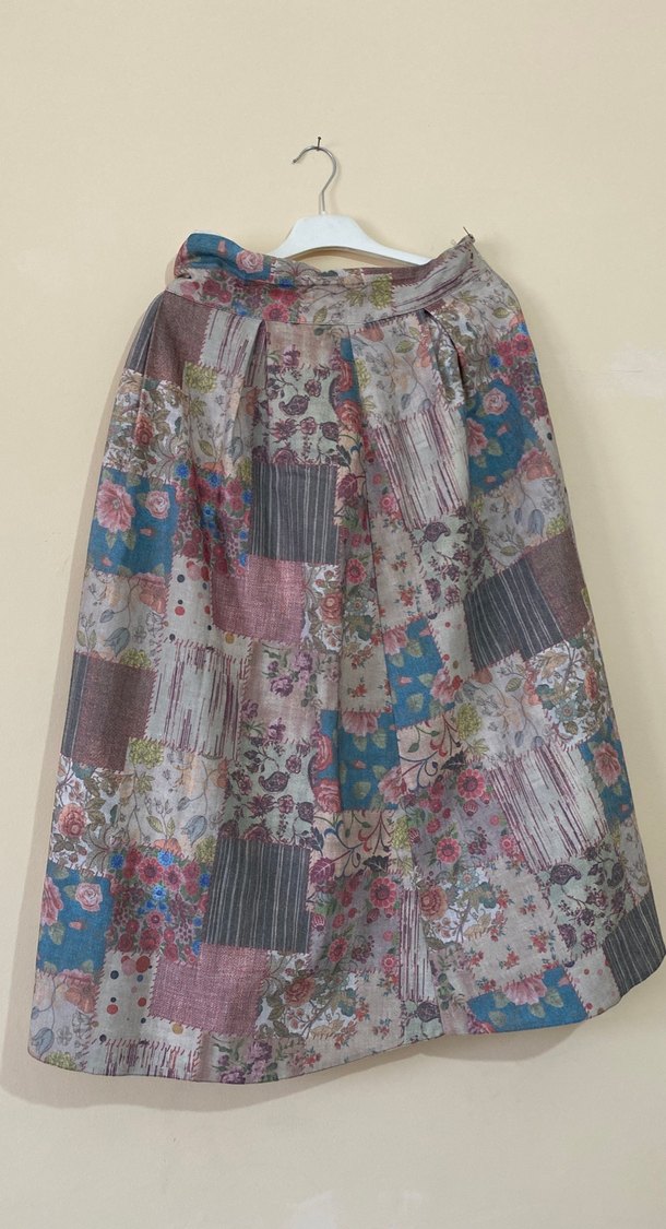 Bohem tarzda, bol kesim ve drapeli çok renkli uzun etek. Yumuşak tekstil kumaştan, günlük kullanıma uygun.