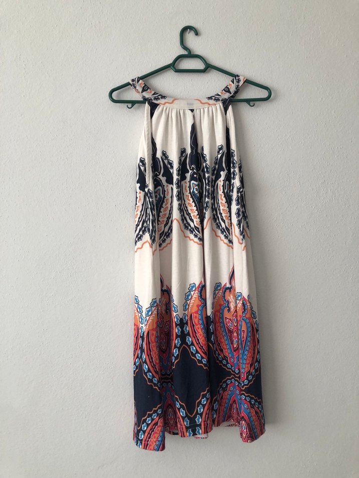 Bohem tarzı, askısız halter yakalı, çok renkli batik desenli, uzun ve salaş kesim hamile elbisesi olarakta kullanılır Günlük kullanım için uygundur. Bebeğim olduğu için ütü yapamadım kusura bakmayın ☺️