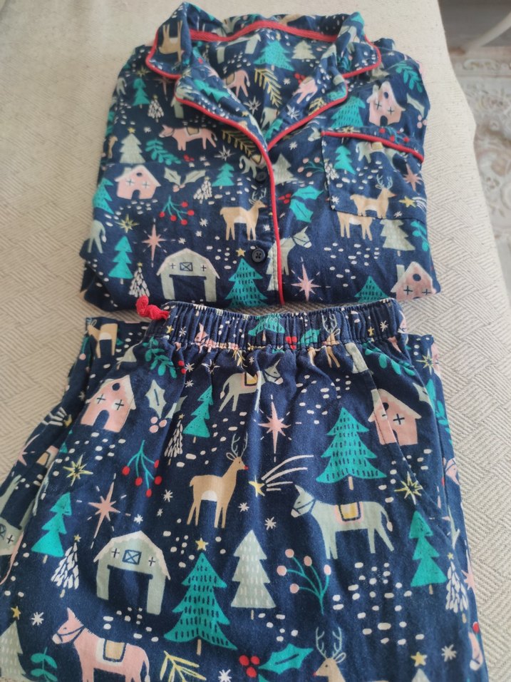 Bohem tarzda, yılbaşı desenleriyle çok renkli desenlere sahip, uzun kollu kadın pijama takımı. Normal boy üst ve elastik bel pantolon içerir, rahatlık sunar. 15,16 yazıyor fakat 50, 55 kilo rahatlıkla olur
