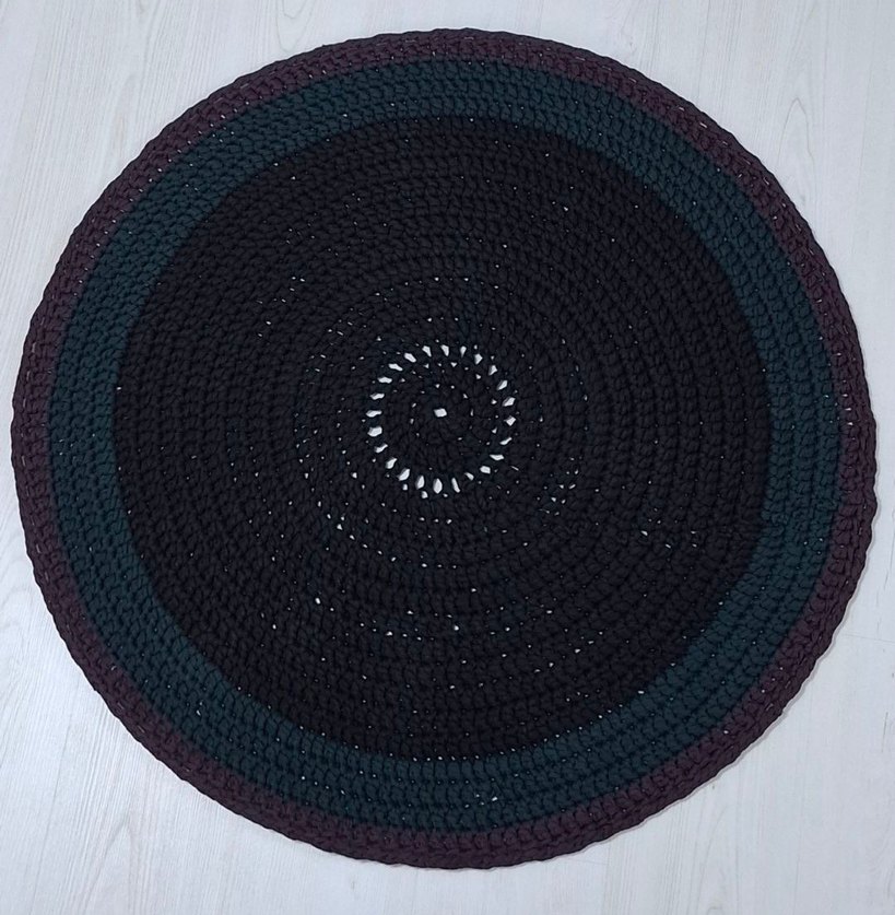 Bohem tarzda, koyu çok renkli halkalara sahip yuvarlak halı. Yumuşak dokulu ve desensiz tasarımıyla ortamınıza sıcaklık katar. Çap: 92×92cm