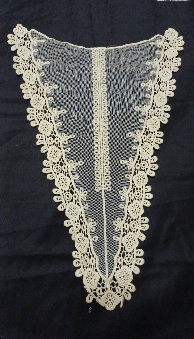 Bohem tarzı, ince tül kumaş üzerine çiçek desenli detaylı dantel işlemeye sahip dekoratif yaka. Giysilere zarif bir dokunuş katar.