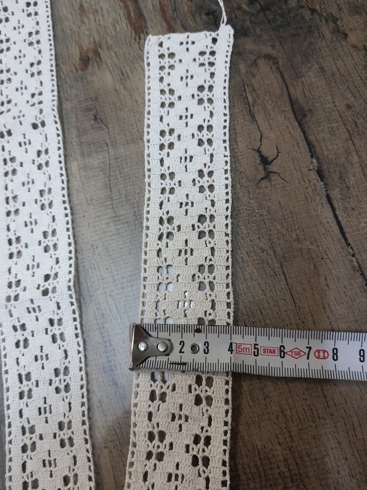 Bohem tarzda, 4.5 cm genişliğinde, ince desenlere sahip dantel şerit. El işi süslemeleri için uygundur. 145cm boyu