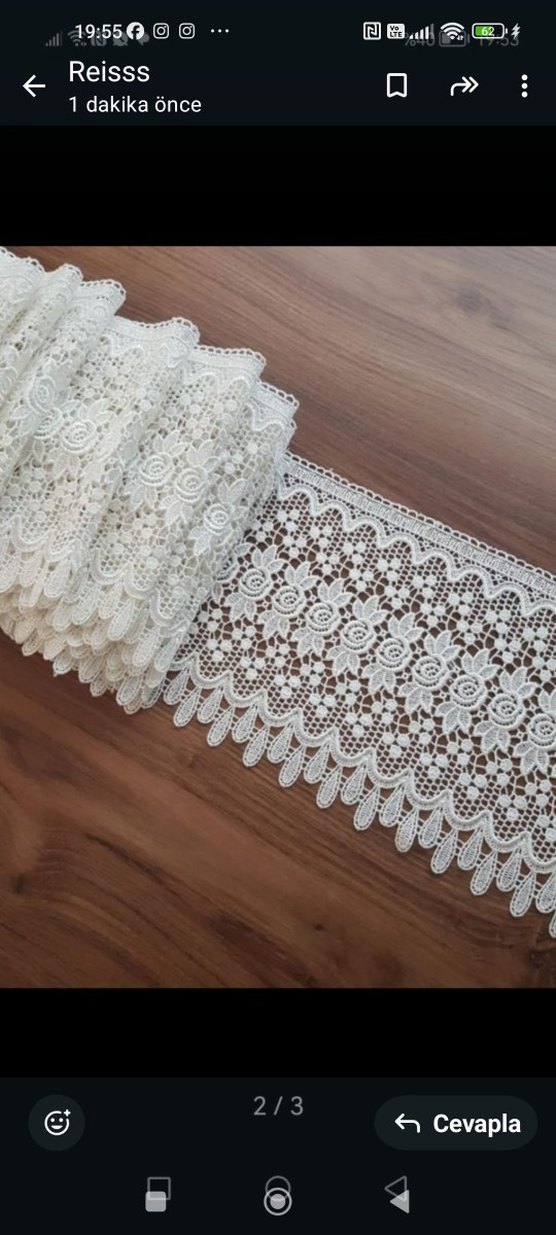 Çiçek desenli ve dalgalı kenarlı bohem tarzı dantel şerit, dekoratif el işleri için uygundur.