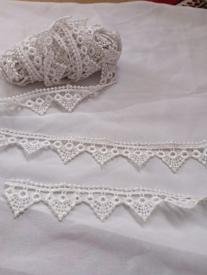 Bohem tarzda, üçgen desenli narin dantel şerit, kumaşlara el işi dokunuşu katmak için uygun.