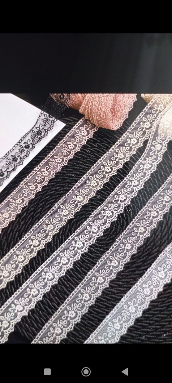 Bohem tarzda, çeşitli pastel tonlarda, ince çiçek desenli dantel şeritleri, el işleri ve süslemeler için uygundur.