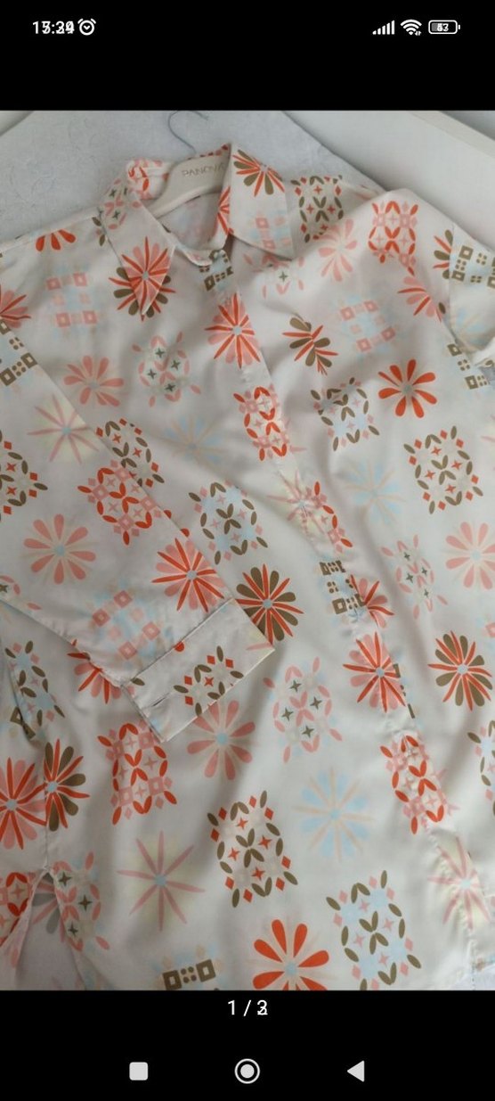 Bohem tarzda, düğmeli, uzun kollu ve tekne yaka kadın gömleği. Pastel çok renkli desenli, bol kesim ve sentetik kumaştan, günlük kullanıma uygun.