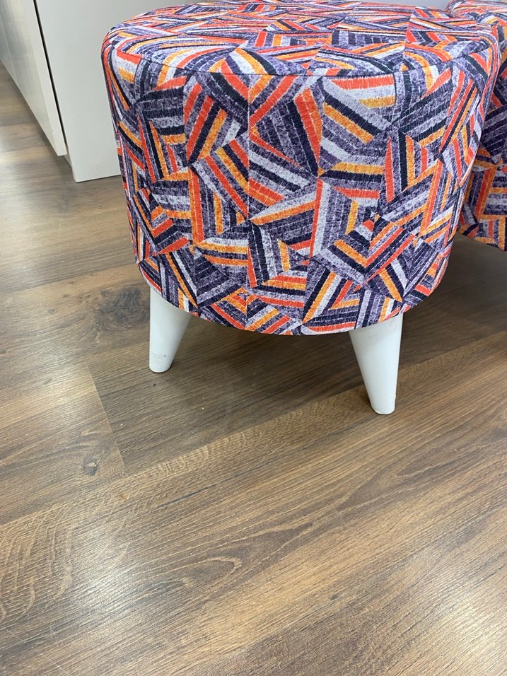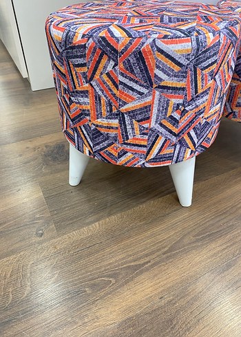 Renkli geometrik desenlere sahip bohem tarzda puf. Yumuşak oturma yüzeyi ve sağlam ayaklarıyla dikkat çeker.
