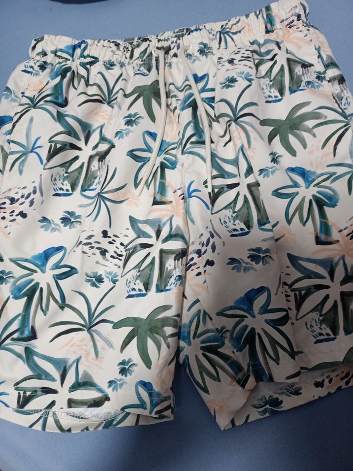 Bohem tarzda, pastel çok renkli desenli, bol kesim erkek şortu. Kısa boylu ve lastikli bel detaylıdır, plaj için uygundur.
