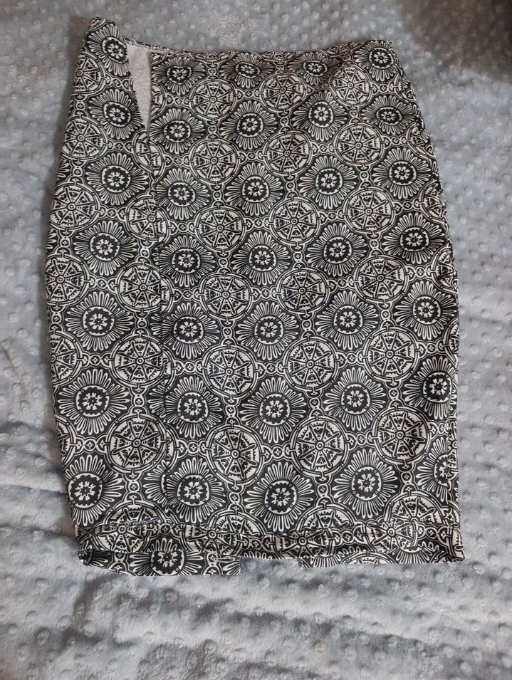 Gri renkte, bohem desenli, normal boy midi eteği. Yumuşak sentetik kumaştan, rahat ve şık bir model.
