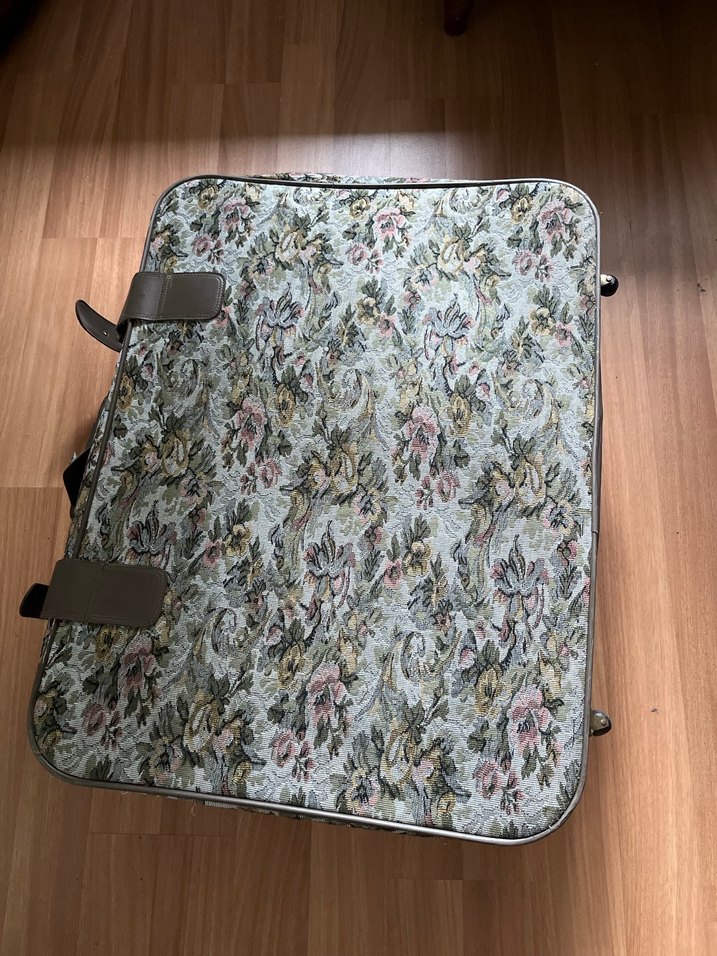 Gri renkte, bohem tarzı yansıtan vintage desenli ve fermuarlı valizdir. Retro bir görünüm sunar. Çekimler için uygun tekerlekleri sağlam elden alınırsa harika olur epey büyük ama hafif bi parça