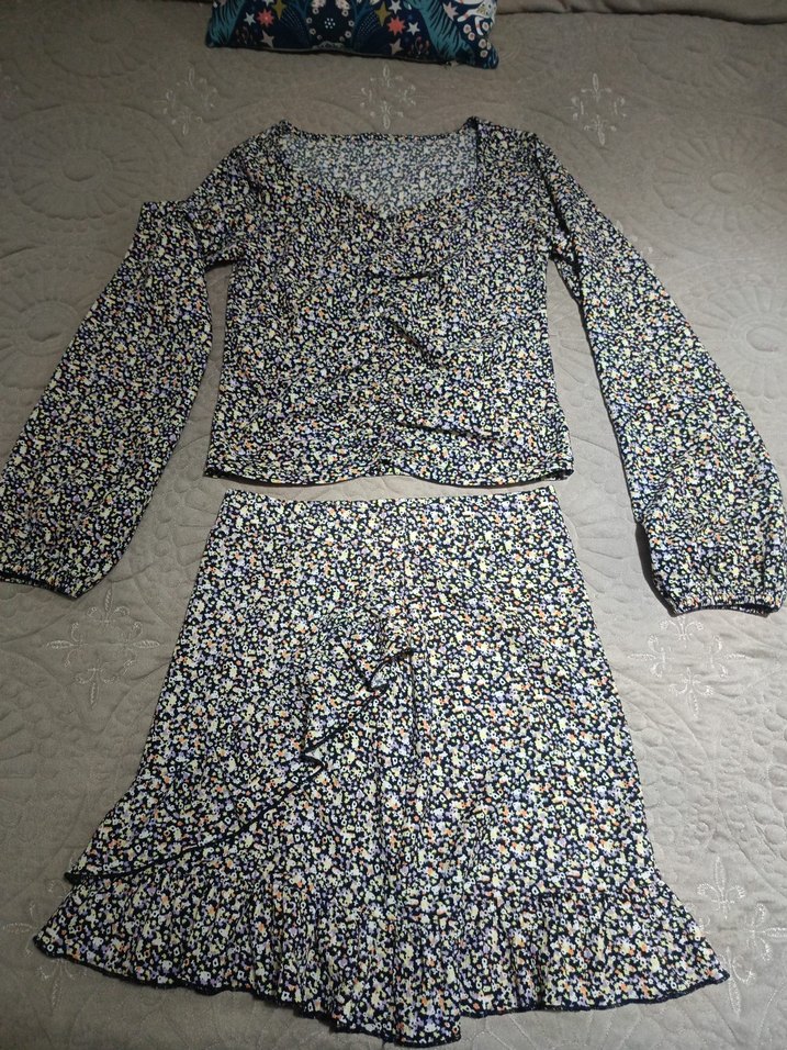 Kadınlar için bol kesim, uzun kollu ve yuvarlak yaka mini takım. Yumuşak sentetik kumaştan, desenli ve fırfır detaylıdır. Bohem tarzda, gri ve çok renkli, günlük kullanıma uygun.
