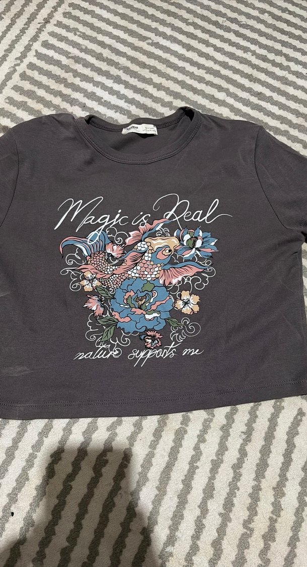 Gri crop tişört çok az kullanıldı bedeni olmadığı için satıyorum