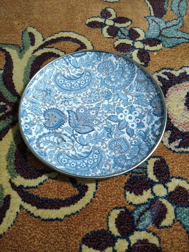 Bohem tarzda desenli, koyu mavi renkte dekoratif tabak. ️