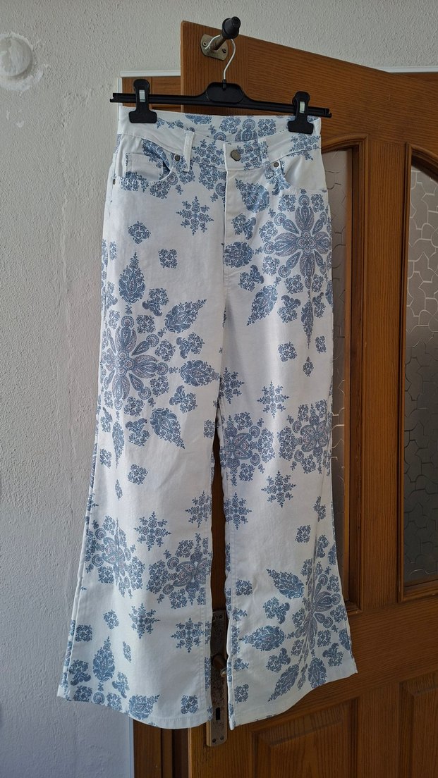 Bohem Desenli Midi Yüksel Bel Denim Pantolon 36 yeni etiketli