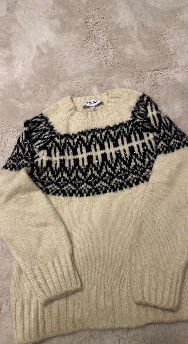 Bohem Desenli Örgü Kadın Kazak 1 kez kullanıldı