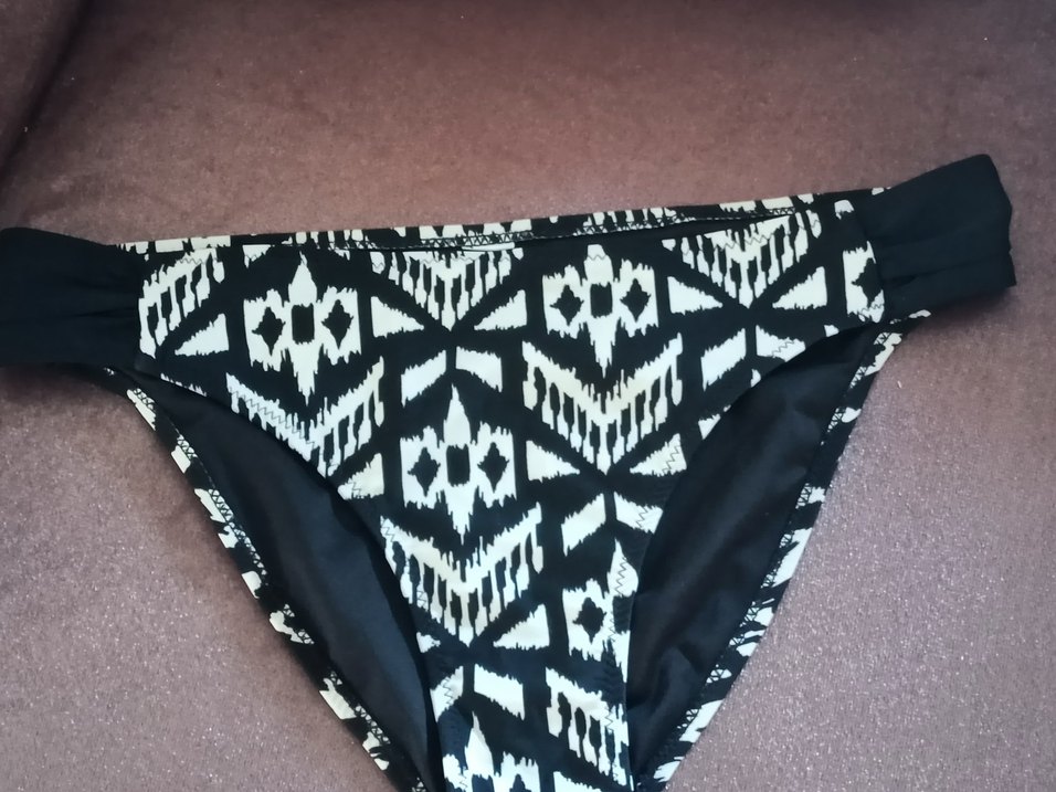 Fitted kesim, siyah beyaz bohem desenli kadın bikini altı, fermuarlı detaylı. Açık hava kullanımı için uygundur. ️