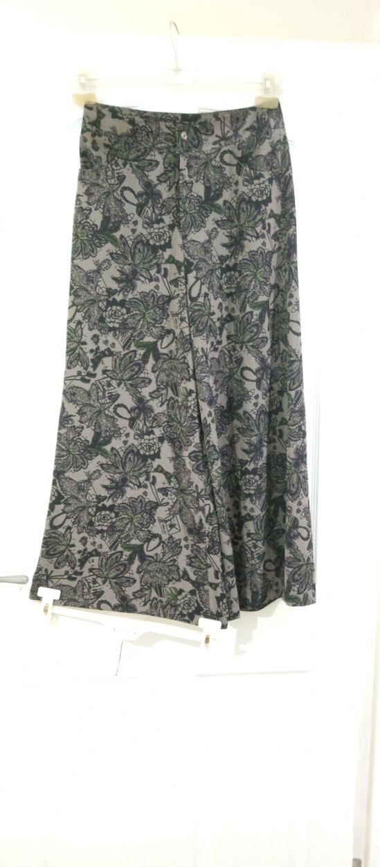 Bohem tarzda desenli, bol kesim ve drapeli uzun gri pantolon, yumuşak sentetik kumaştan günlük kullanıma uygun.ürün fermularli polyester pamuk karışımı bol paça giyildiginde etek gibi uzun az esnek tok bir kumaşi ölçüleri resimlerde vardır 36 bedene denk geliyor yurt dışından geldi dar geldiği için giyemedim koyu antrasit renk üzeri desenli şık istediğiniz ortamda kullanabileceğiniz tarz pantolon