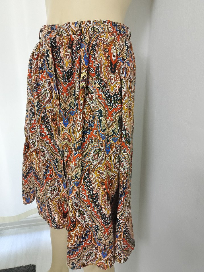 Bohem desenli, bol kesim ve drapeli uzun hamile eteği, yumuşak sentetik kumaştan yapılmıştır. Günlük kullanım için uygundur.