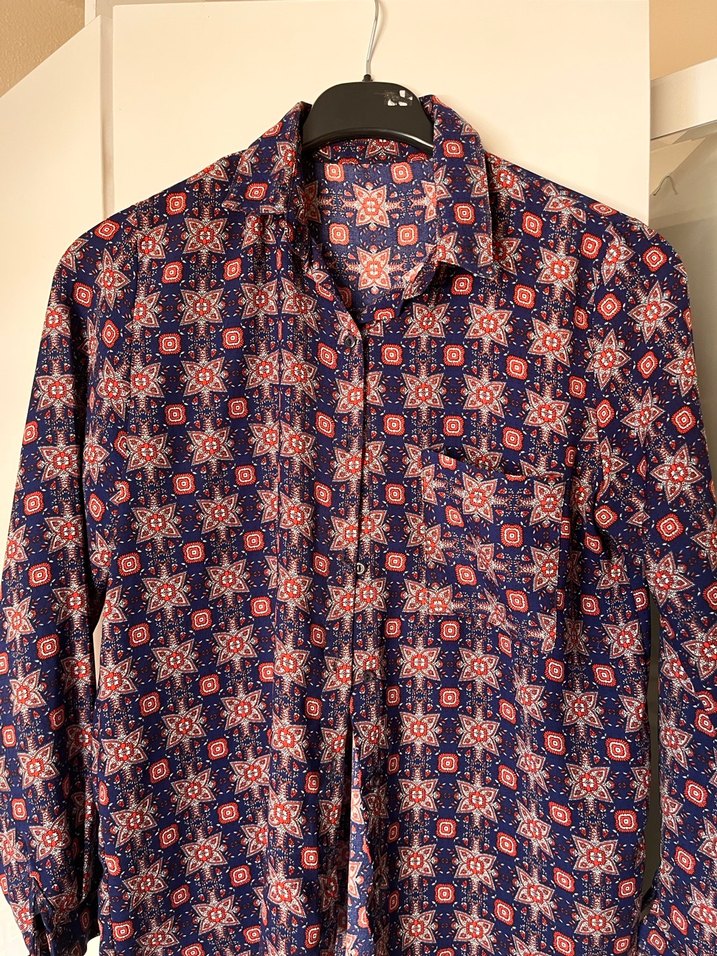 S/M beden. Sökük yırtık yoktur.Bohem tarzı, desenli tekstil kumaştan, uzun kollu, yakalı ve düğmeli kadın gömleği. Rahat ve bol kesimdir.