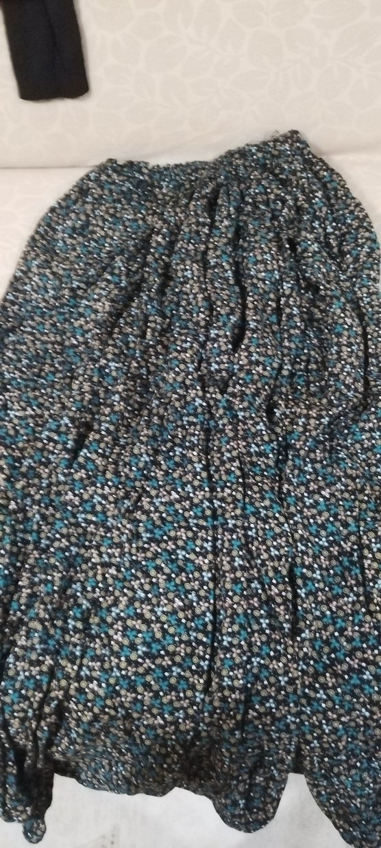 Bohem tarzda, koyu renkli çok renkli desenli, pilili uzun kadın eteği. Rahat kesimiyle günlük kullanıma uygundur.