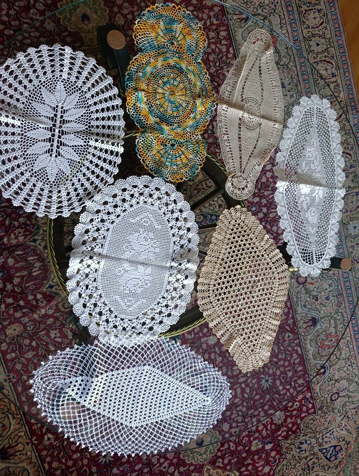 El yapımı bohem tarzı dekoratif dantel örtüler, çeşitli şekil ve renklerde karmaşık örgü desenlerine sahip. İç mekanlara nostaljik bir hava katar. kullanılmadı.adet fiatı 100tl