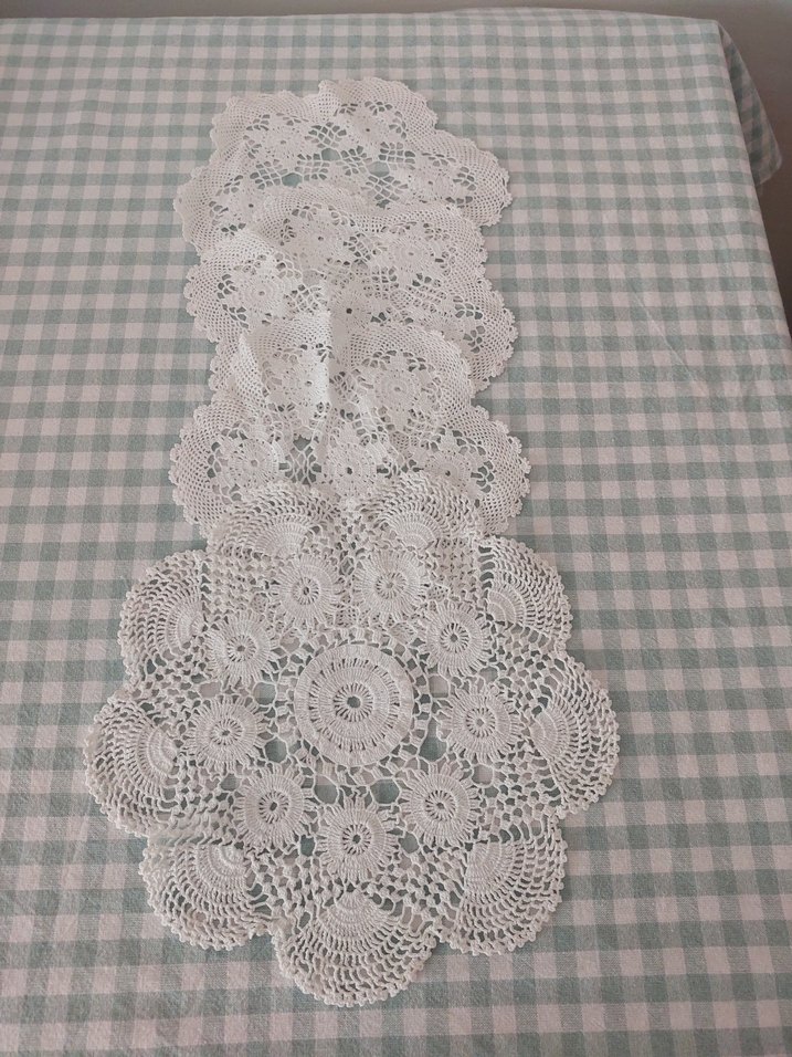 Bohem tarzda, el yapımı beyaz dantel sehpalık yada duvar aksesuarlar, dekorasyona zarif bir dokunuş katıyor.