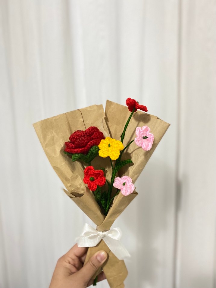 Bohem El Yapımı Renkli Örgü Çiçek Buketi