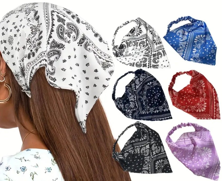 Kadınlar için elastik bantlı, çok renkli koyu paisley desenli sentetik kumaş bandana Bohem ve retro tarzlara uygundur. 1 adet fiyatıdır
