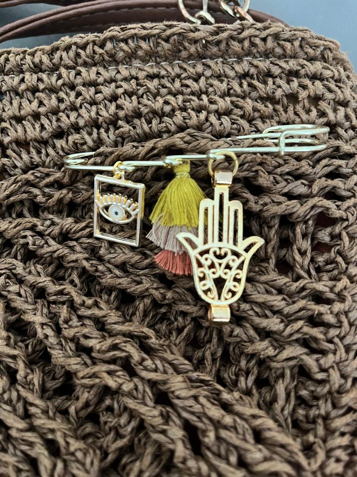 Bohem tarzda, püsküllü ve etnik desenli, çok renkli kadın broş. Günlük kullanıma uygun. ÇANTA ve ŞAL AKSESUAR