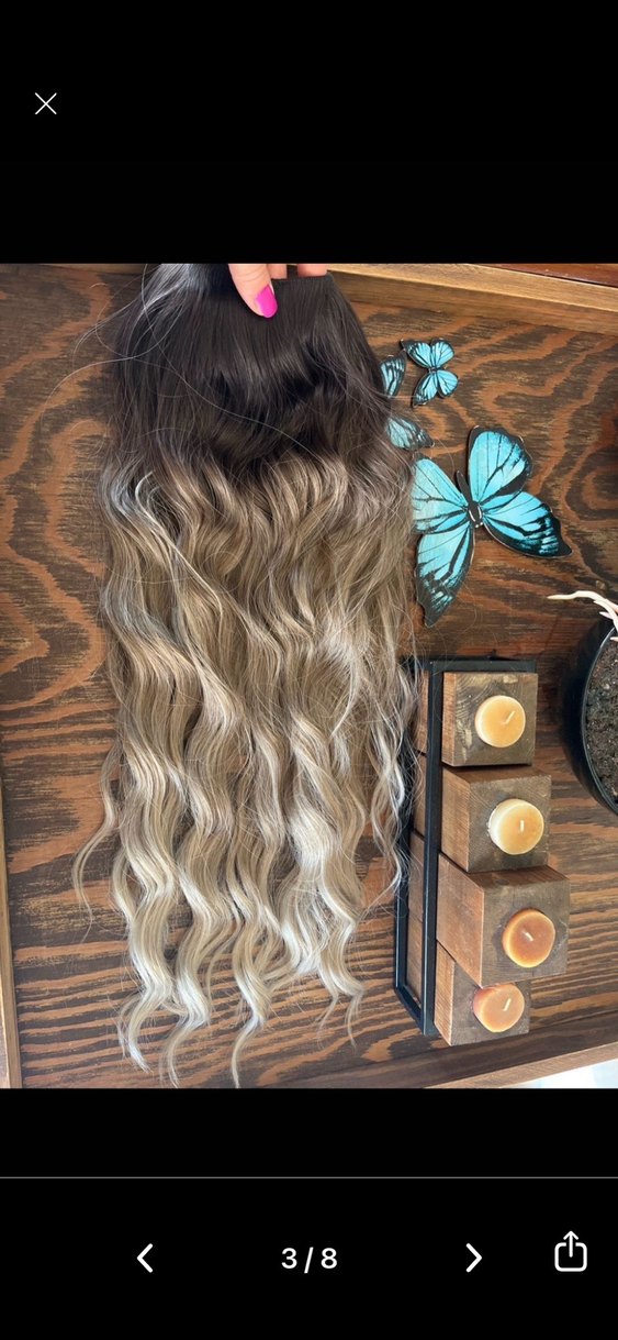 Bohem tarzda, bej ve gri tonlarında, yumuşak dalgalı sentetik saç .
