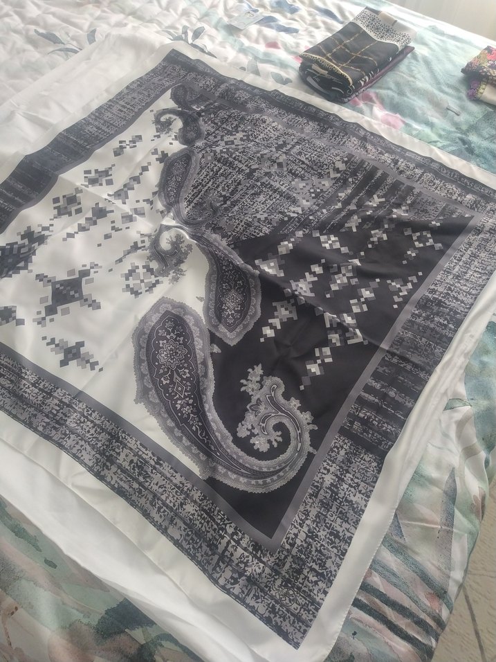 Bohem Gri-Beyaz Desenli Kadın eşarp