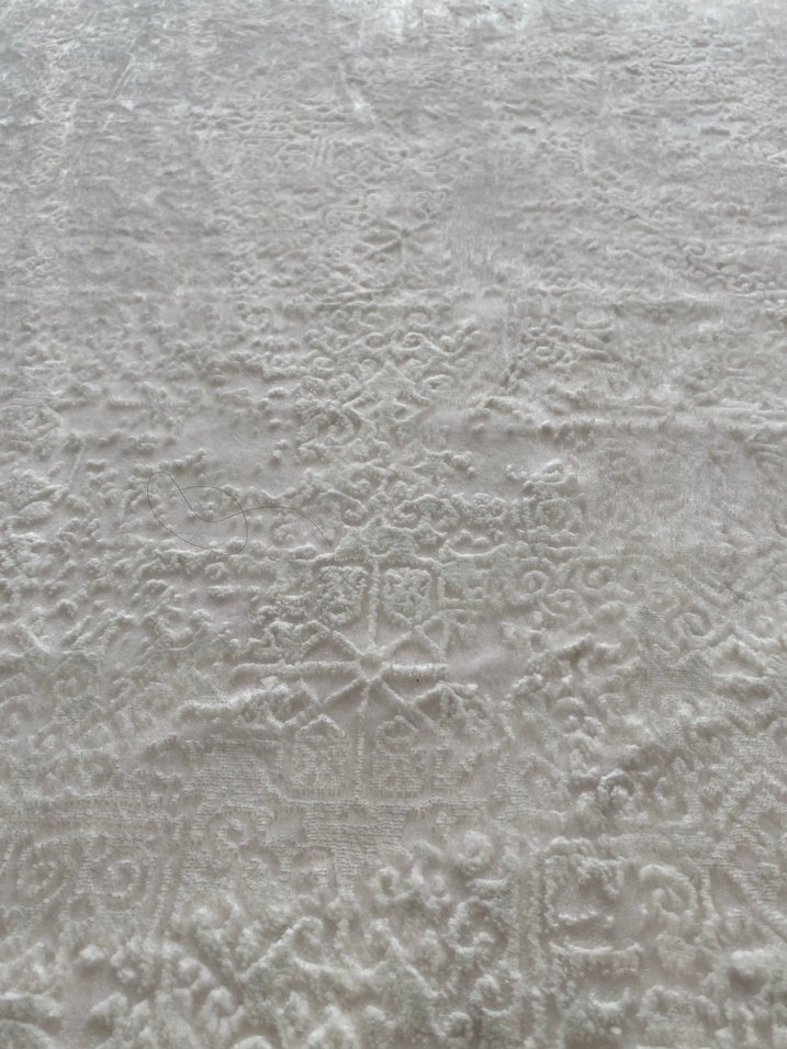 Bohem tarzı, beyaz tonlarda yumuşak dokulu, hafif kabartmalı desenlere sahip halı. İpek halıdır. 8 bin tl ye alındı. Geçen sene aldım. Ürünü yanlış süpürge tercihi yüzünden kullanamadım.
