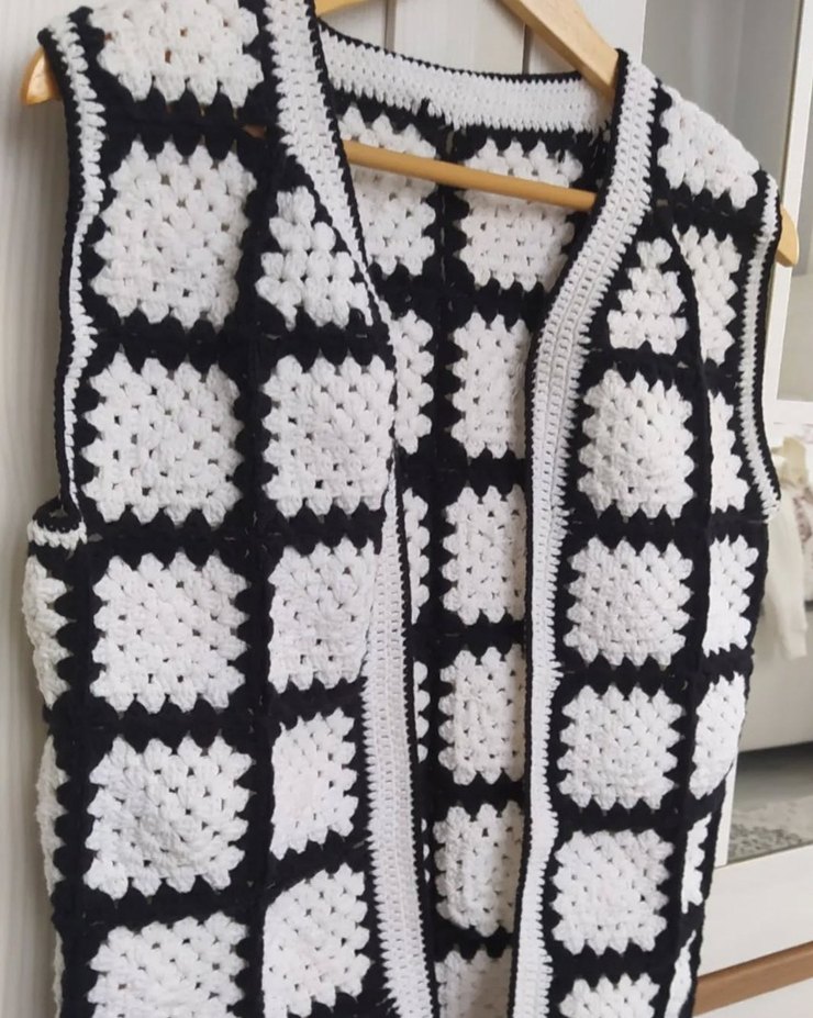 Bohem Gri Beyaz Örgü Kadın Yelek ( Koton ip ile örülmüştür)