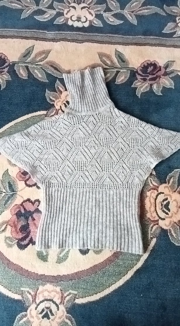 Gri renkte, boğazlı ve kısa kollu, dar kesim bohem tarzda örme triko kazak. Rahat ve şık bir görünüm sunar.
