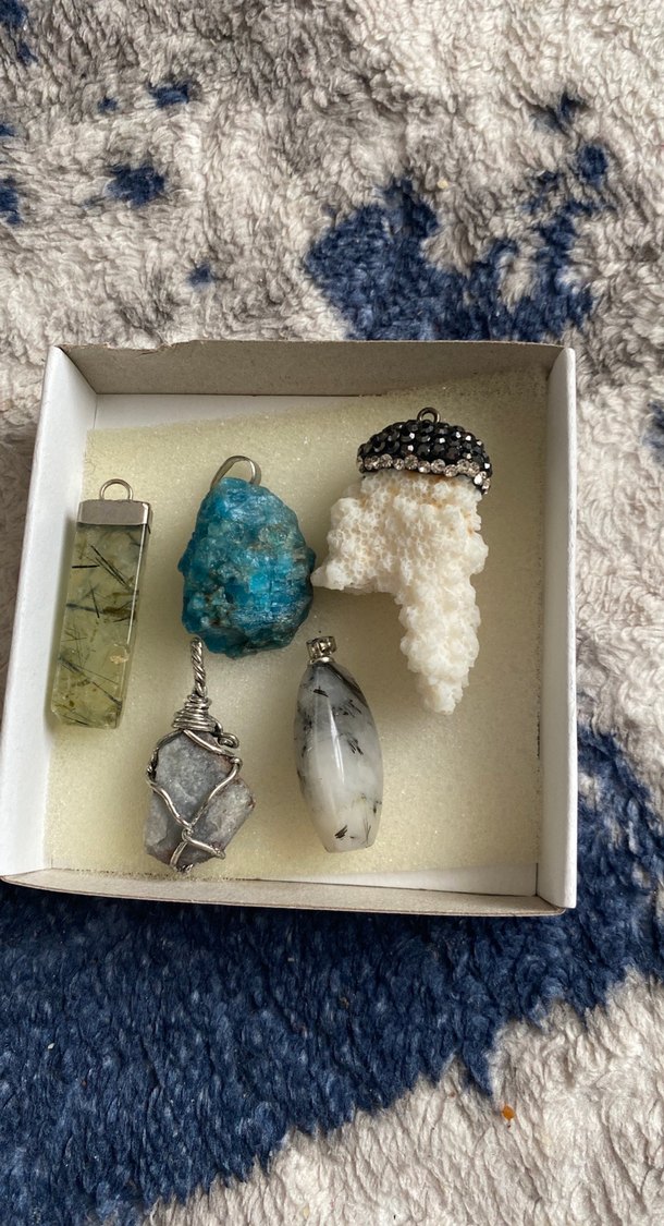 Bohem tarzı, boncuklu gri ve turkuaz taşlardan oluşan çeşitli şekillerde kadın kolye uçları, günlük kullanım için uygundur. 5 li kolye mercan apatit rutil kuvars anjelit orenhit taşları birlikte