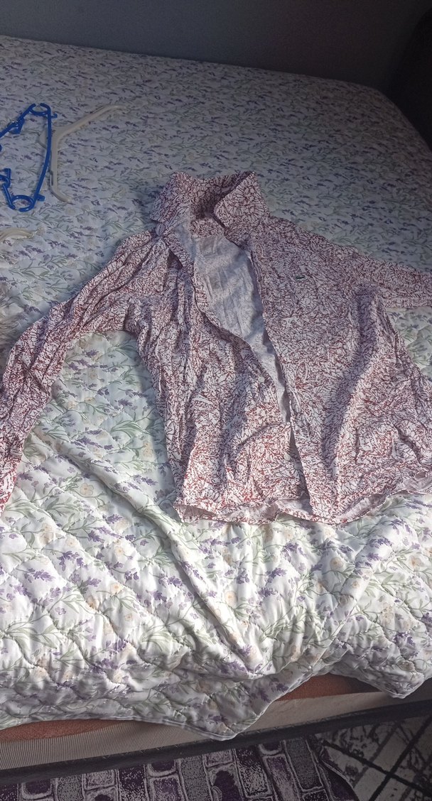 Bohem tarzda, uzun kollu ve yakalı keten gömlek. Gri ve bordo tonlarında batik desenli, bol kesim ve dökümlü yapıda. Günlük kullanıma uygun.