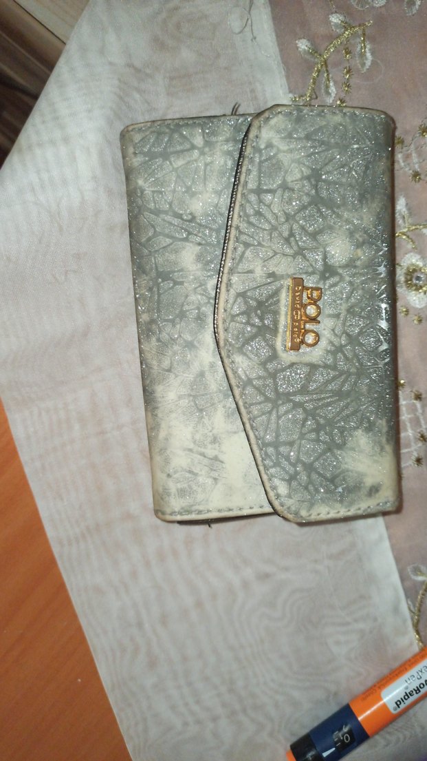Gri deriden yapılmış, baskılı desenli, simli cüzdan. günlük kullanıma uygundur. zamanla derisi simleri soyuluyor ama içi sağlam ve kullanıma uygundur