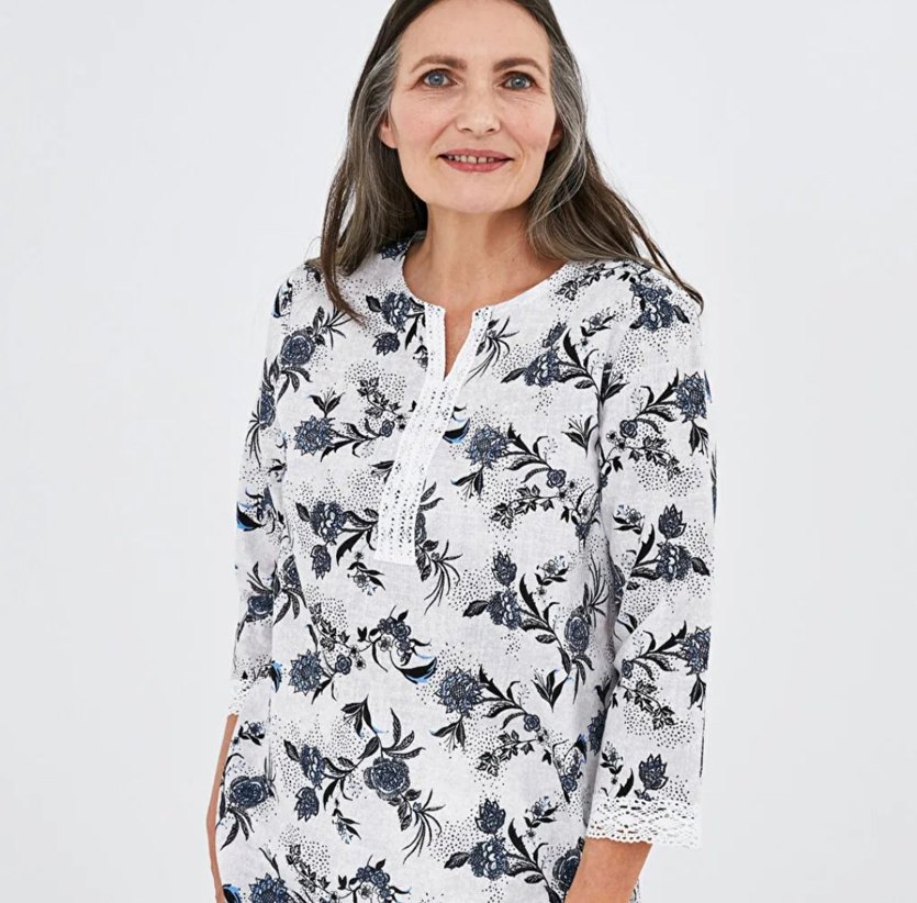 Gri çiçek desenli, dantel detaylı, V yakalı ve uzun kollu bohem tarzda rahat kesim bluz. Yumuşak tekstil kumaştan, midi boyda, günlük kullanıma uygun. #lcw #takip #beğen #öner