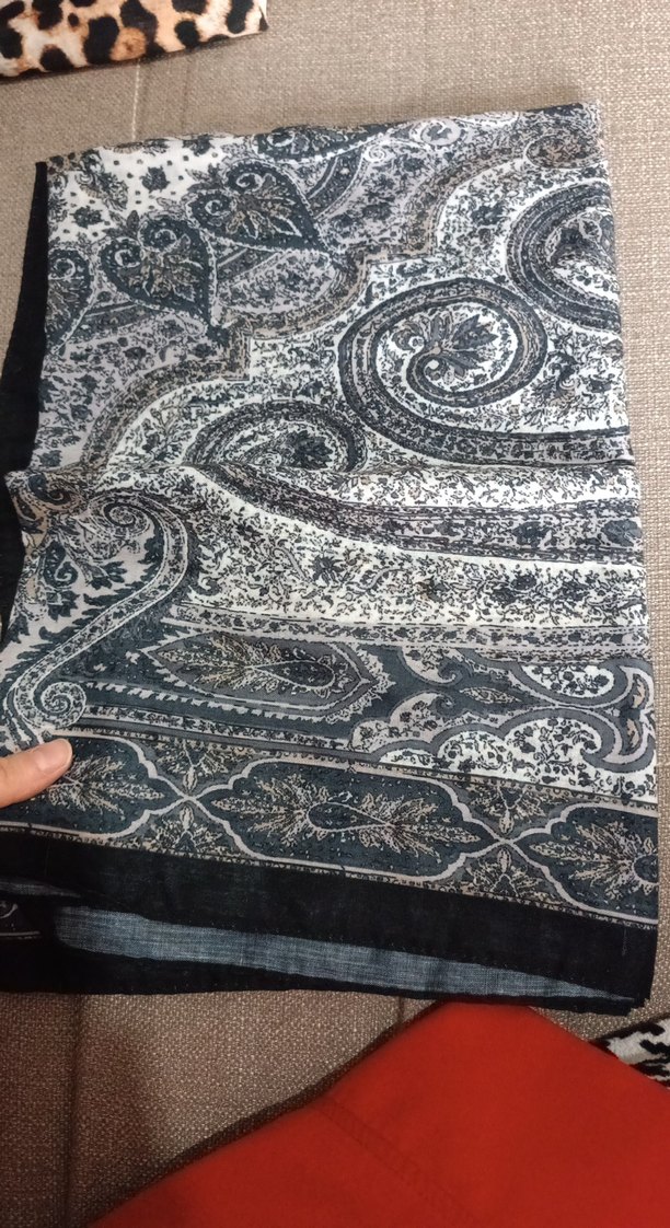 Yumuşak sentetik kumaştan, bohem desenli gri drapeli kadın şalı, retro ve hippie tarzına uygundur. bir defa kullanıldı iç belli etmez çok hafif mükemmel bir şal #tesettür #şal