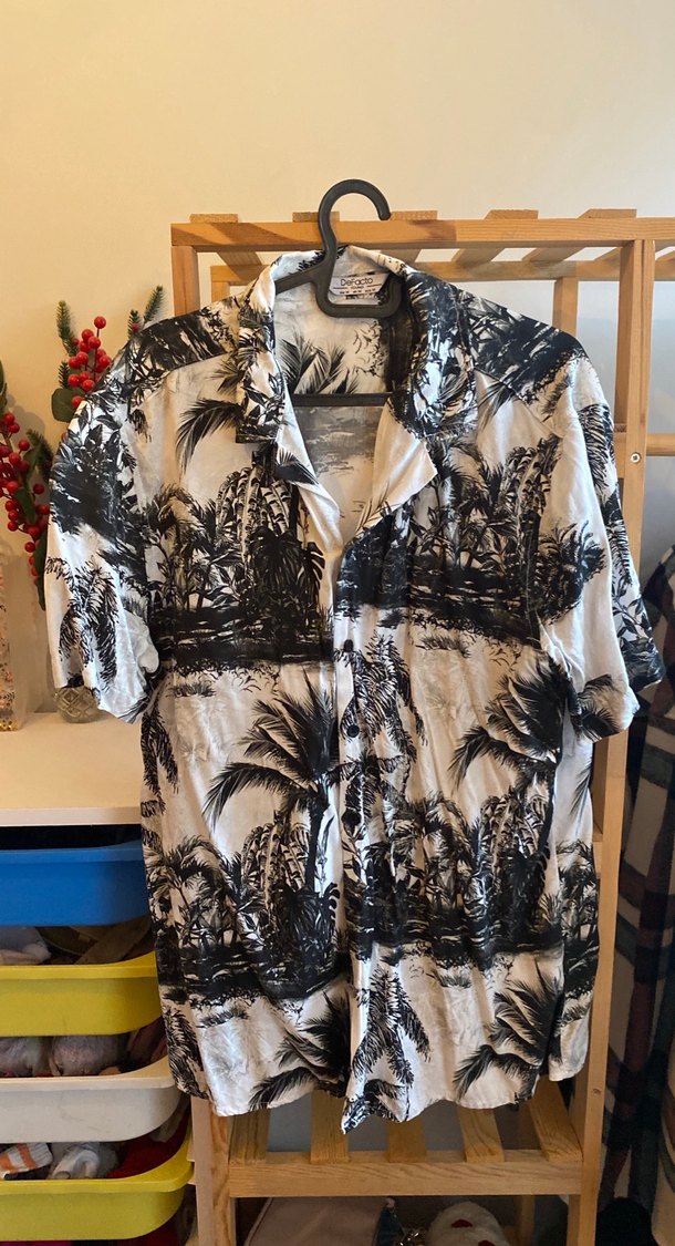 Pamuklu, kısa kollu, düğmeli ve bohem desenli gri erkek gömlek. Salaş kesimi ve yakalı tasarımıyla günlük kullanıma uygundur.