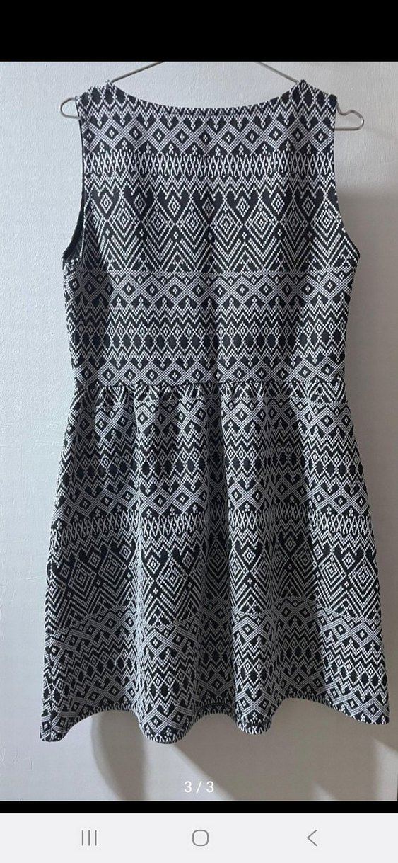Gri desenli, kolsuz, yüksek yakalı, pileli ve vücuda oturan midi elbise. Günlük kullanıma uygun bohem tarzda.
