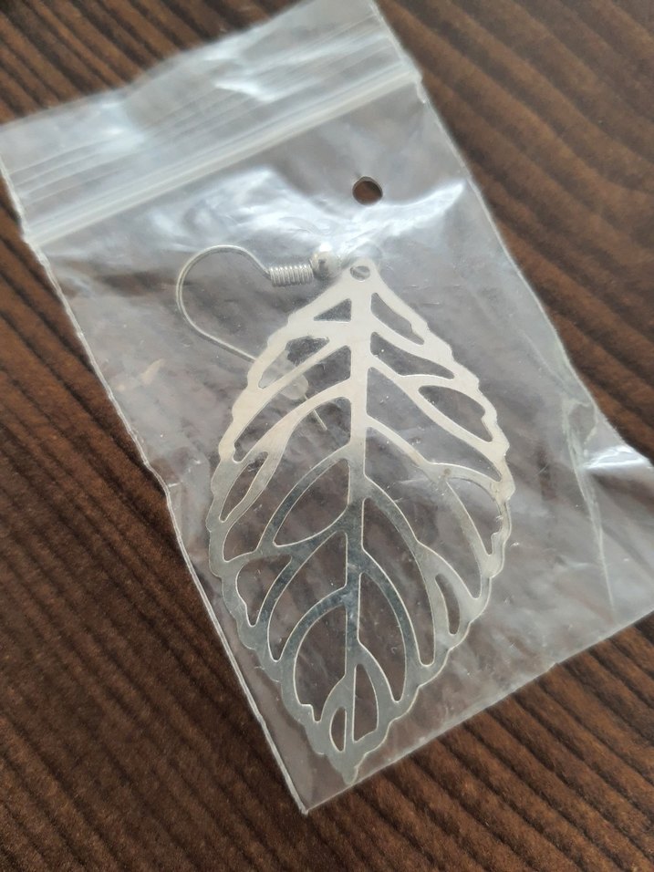 Bohem tarzda, gri baskılı yaprak deseni ve dantelli detaylı midi küpe. Günlük kullanım için minimalist ve bej tonlarında.