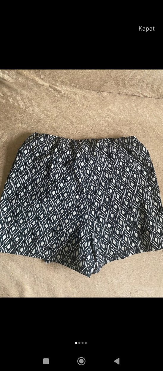 Gri tonlarda bohem esintili geometrik desenli, bol kesim mini şort etek Konfor ve şıklık için kemerli bel detayına sahiptir. Günlük kullanıma uygundur.