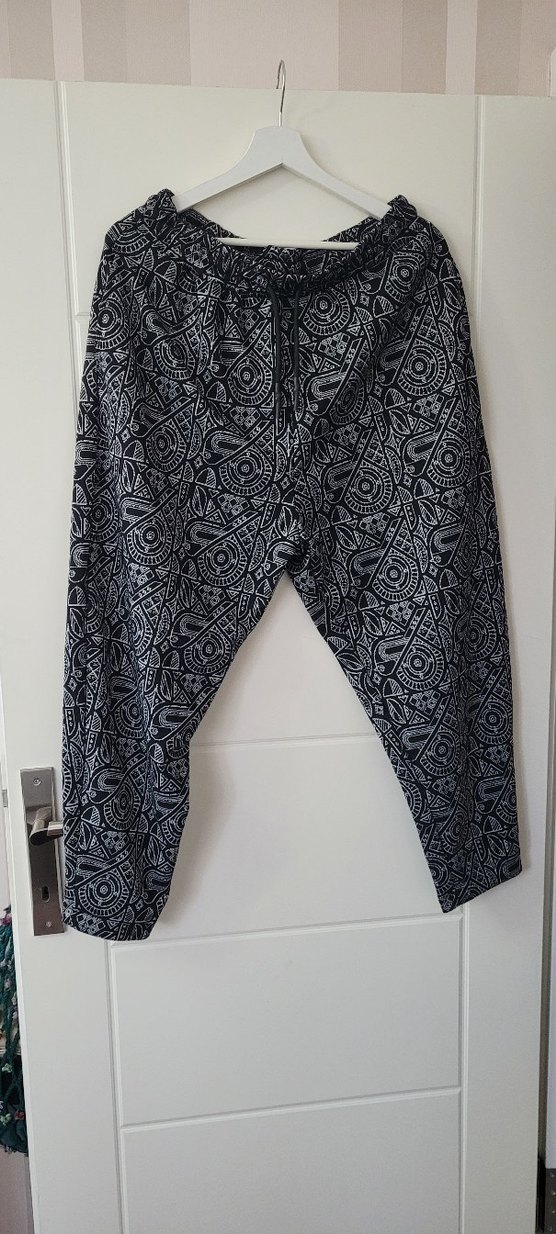 Gri desenli triko, bol kesim pantolon, bohem sokak stiline uygun. Hiç giyilmedi.