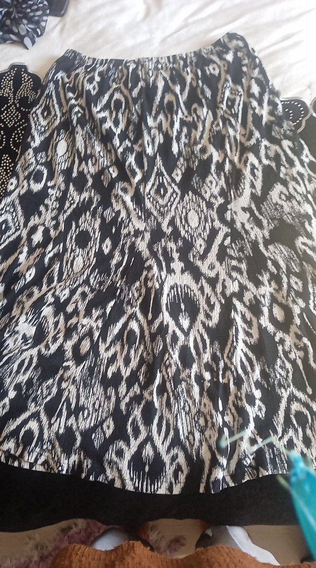 Gri desenli dokuma kumaştan, bohem tarzda uzun ve bol kesim etek Günlük kullanıma uygundur.